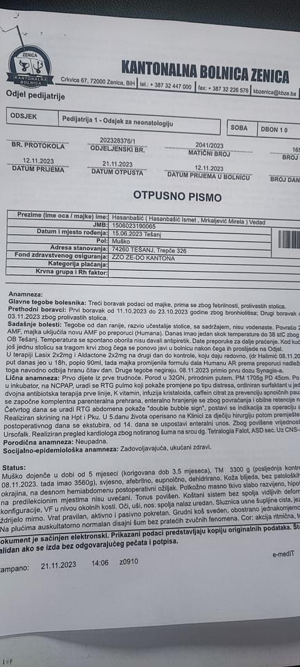 Malenom Vedadu Hasanbašiću hitno je potrebno 15.000 eura za operaciju u Turskoj, piše 072info.