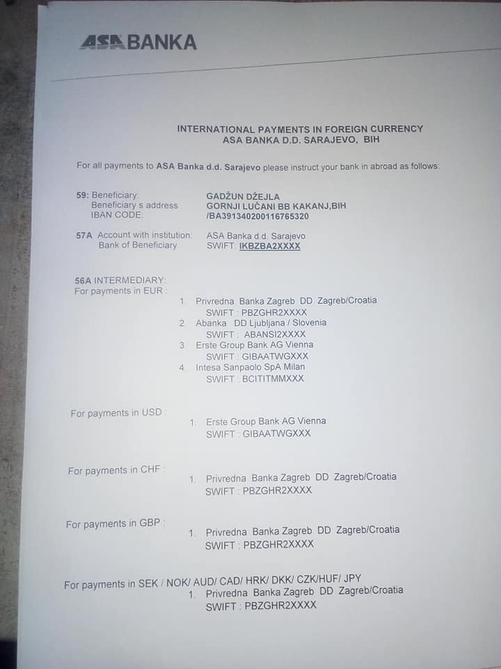 Adresa: Gornji Lučani bb. Kakanj ili na humanitarni broj: