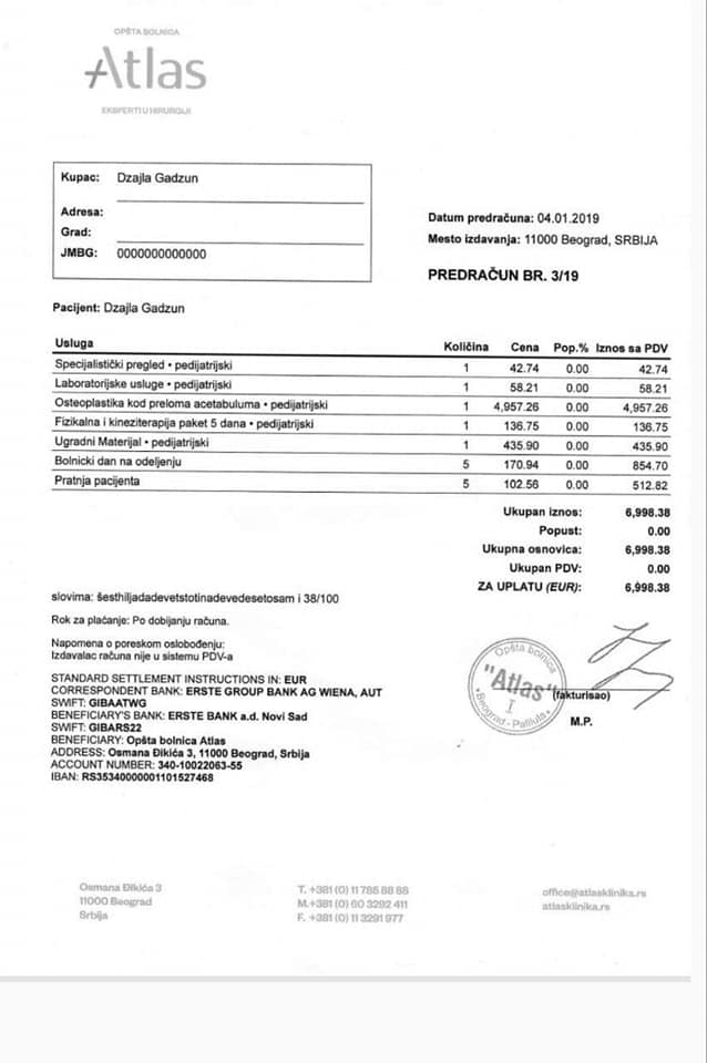 Za operaciju je potrebno 7.000 eura ali Džejlini roditelji nažalost nisu u mogućnosti sami prikupiti novac jer žive od minimalne plate i Džejline invalidnine.