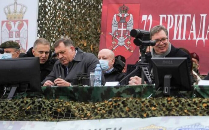 – Kao da je neko objavio rat u BiH, tako se polemika vodi, a u suštini razgovaralo se i razgovara o mogućnosti mirnog razlaza u BiH, što je jedina opcija koja će sigurno biti ostvarena u nekom narednom periodu – rekao je Dodik novinarima na poligonu “Pasuljanske livade”, gdje je sa predsjednikom Srbije Aleksandrom Vučićem prisustvovao vježbi Vojske i policije “Odgovor 2021”.