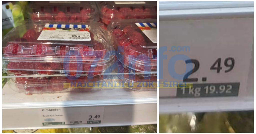 Naš čitatelj poslao je fotografiju iz Austrije i pokazao da kilogram maline iznosi 19.92 eura.