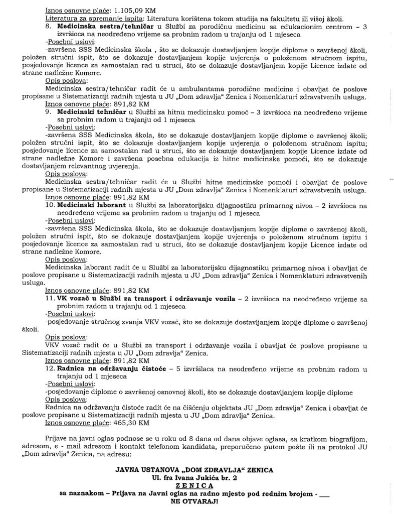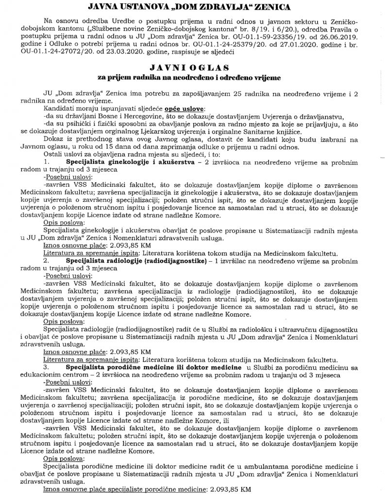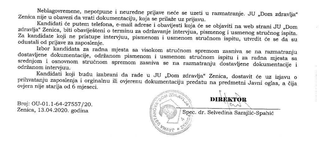 Dom zdravlja Zenica raspisao konkurs za prijem 27 radnika