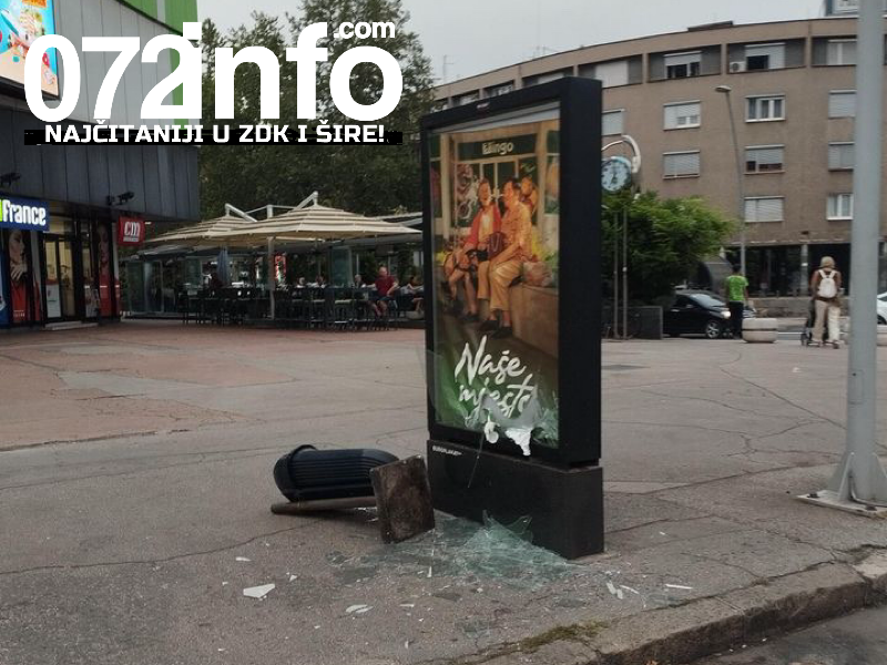 Nepoznati mladić, bez ikakvog vidljivog povoda, uzeo je kantu i njome razbio reklamni izlog u tom dijelu grada.