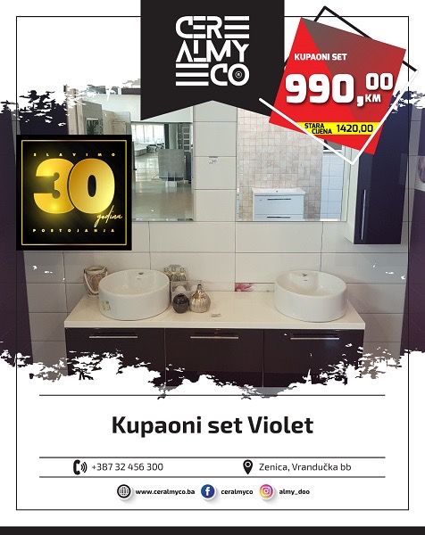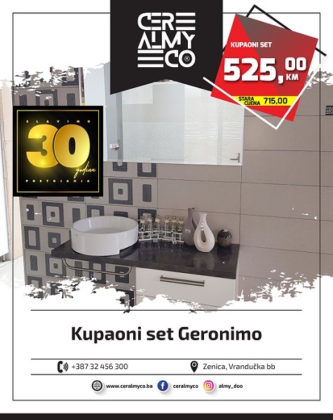 Kompanija Almy slavi 30 godina postojanja! Dva kupaona seta po ekstra sniženim cijenama potražite u salonu Ceralmyco!