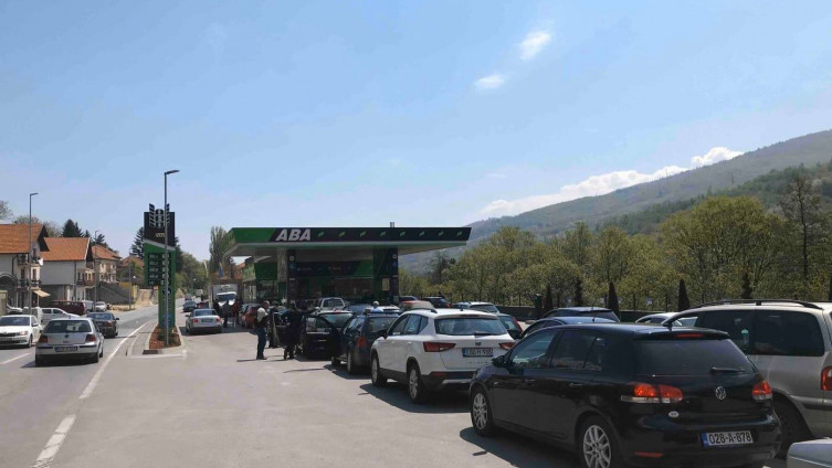 Nakon što se fotografija benzinske pumpe “Tioil” proširila društvenim mrežama, zavladala je prava pomama za crnim zlatom i zabilježene su kilometarske kolone. Isto je danas zabilježeno tri kilometra niže, čemu svjedoče i fotografije.