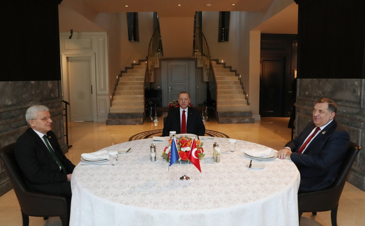 Predsjednik Turske Redžep Tajip Erdoan (Recep Tayyip Erdogan) sastao se sa članovima Predsjedništva Bosne i Hercegovine Šefikom Džaferovićem i Miloradom Dodikom, javlja Anadolu Agency (AA).