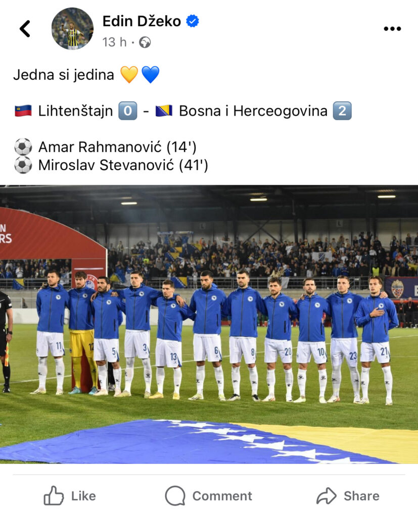 No, Džeko uopšte nije govorio o tome, već je pohvalio naš nastup.