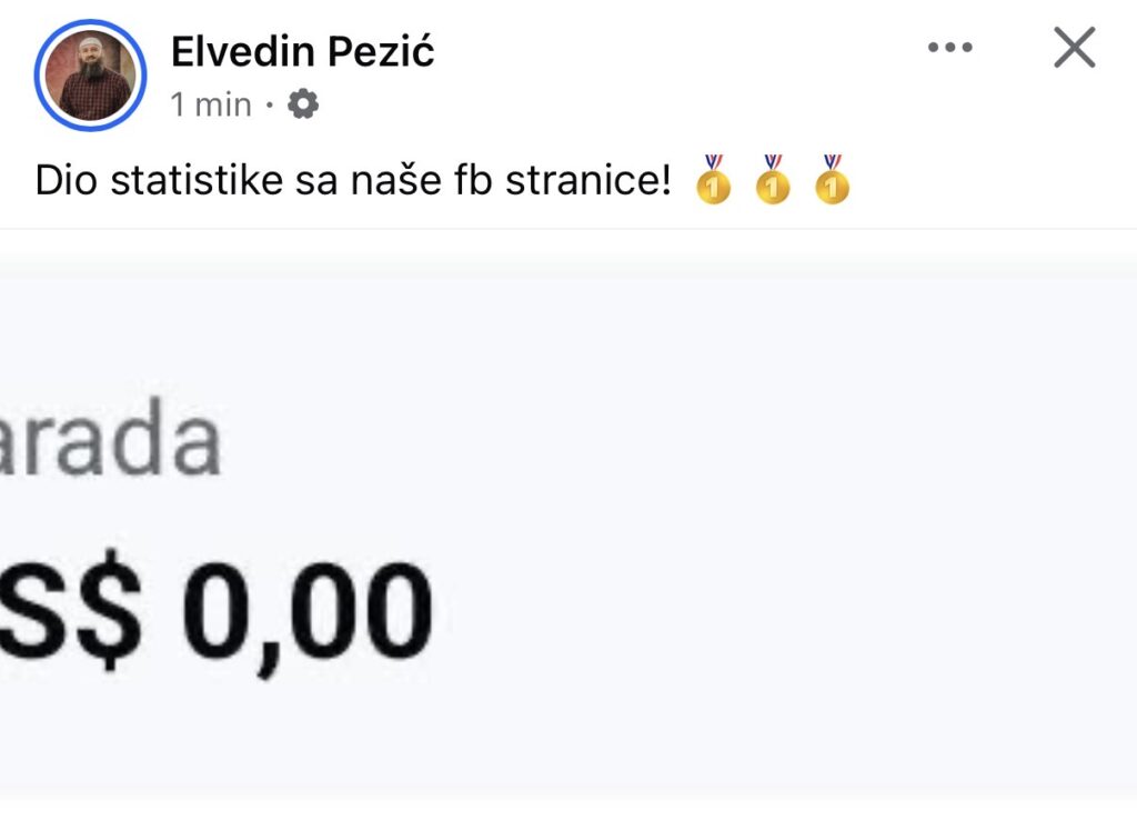 Elvedin Pezić objavio stvarnu zaradu sa Facebooka