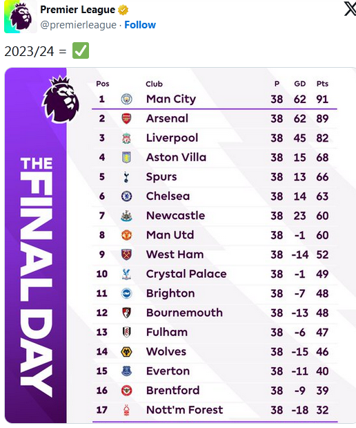 Mančester Siti je pobjedom nad Vest Hemom rezultatom 3:1 na svom Etihadu osvojio četvrtu uzastopnu titulu prvaka Engleske.