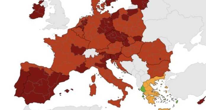 Još od ranije se na epidemiološkoj karti Evrope regije obilježavaju crvenom, narandžastom i zelenom bojom, a za ona područja za koja nema podataka – sivom.