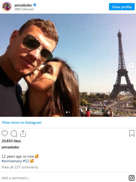 Ljubav između Edina i Amre Džeko traje već 12 godina. Ovim lijepim povodom Amra se oglasila na društvenim mrežama i podijelila dvije fotografije.