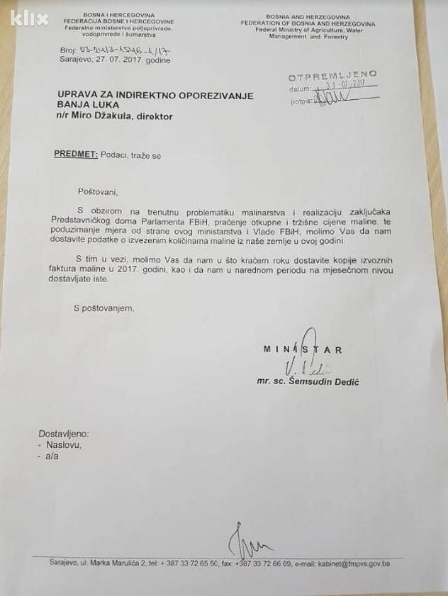 S obzirom na to da u javnosti ima puno dezinformacija vezanih za kretanja cijene maline na evropskom tržištu, Federalno ministarstvo poljoprivrede, vodoprivrede i šumarstva odlučilo je doći do preciznih podataka u Upravi za indirektno oporezivanje BiH.