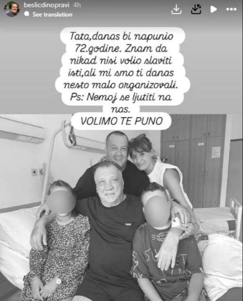 – Tata, danas bi napunio 72. godine. Znam da nikad nisi volio slaviti isti, ali mi smo ti danas malo nešto organizovali. PS: Nemoj se ljutiti na nas. Volimo te – napisao je Dino.