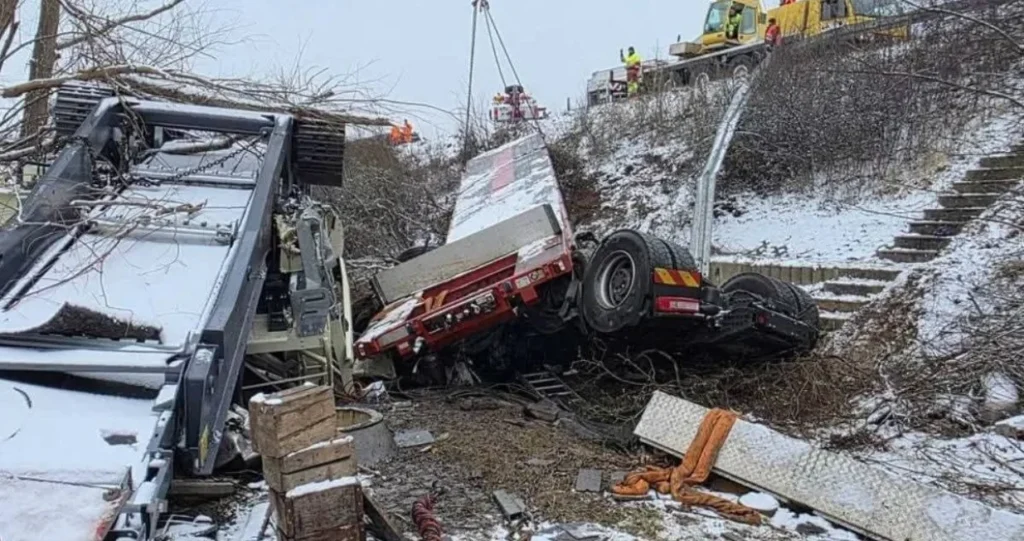 Kamion je najprije udario u zaštitnu ogradu, potom prešao sve tri trake autoputa, probio i drugu ogradu i završio u jarku pored puta. Prilikom prevrtanja došlo je do pomjeranja tereta, a prema navodima njemačkih medija, 44-godišnji vozač je najvjerovatnije ostao priklješten ispod mašine i preminuo na mjestu nesreće.