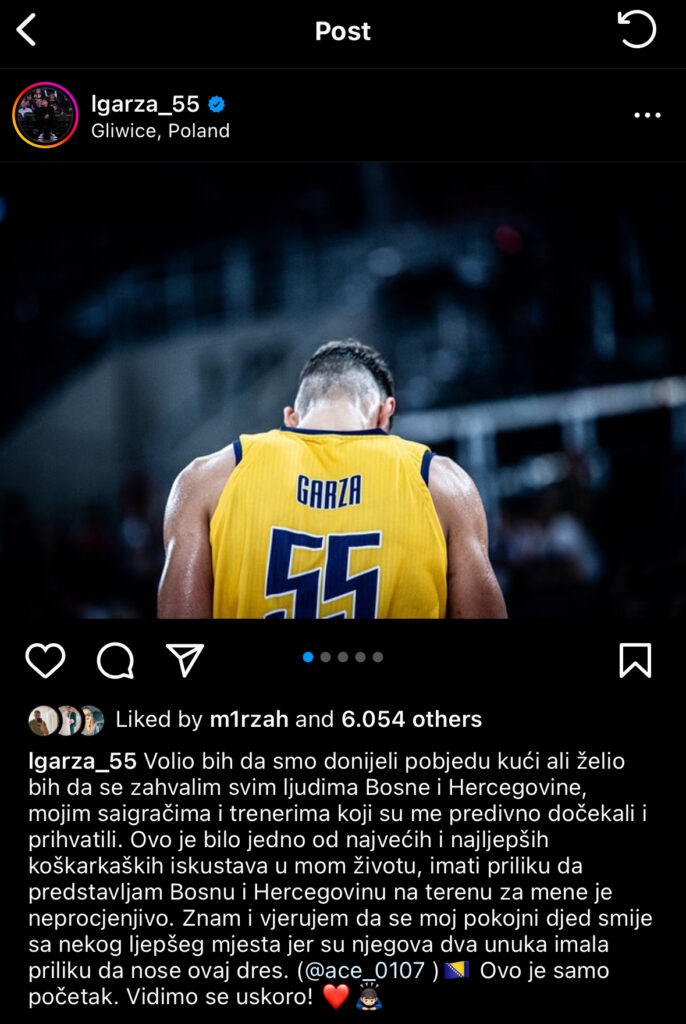 Znam i vjerujem da se moj pokojni djed smije sa nekog ljepšeg mjesta jer su njegova dva unuka imala priliku da nose ovaj dres (op. Amar Alibegović). Ovo je samo početak. Vidimo se uskoro”, poručio je Garza.
