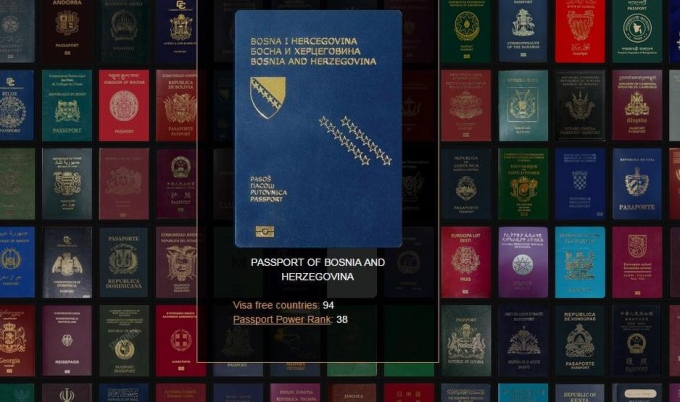 Pasoš Bosne i Hercegovine nalazi se na 38. mjestu sa 94 zemlje koje od naših građana ne traže vizu. Hrvatska se nalazi na 19. mjestu sa 124 zemlje, Crna Gora na 35. mjestu sa 98 zemalja, a Srbija na 31. mjestu sa 104 “slobodne” države.