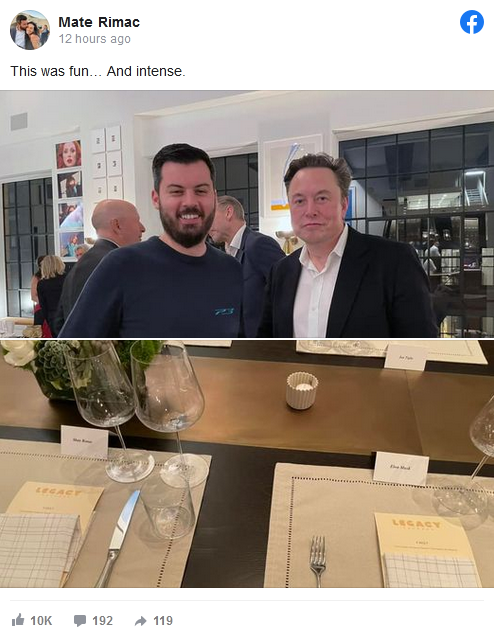 Mate Rimac, 33-godišnji inženjerski genije rođen u Bosni i Hercegovini u Livnu, objavio je zanimljivu fotografiju na svom Facebook profilu.