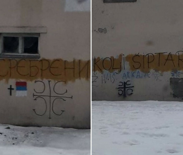 Čitaoci portala Antena M poslali su fotografije sa jedne zgrade u naselju Dolac sa zastrašujućim porukama “kolji šiptare” i “živiš Arkane”.