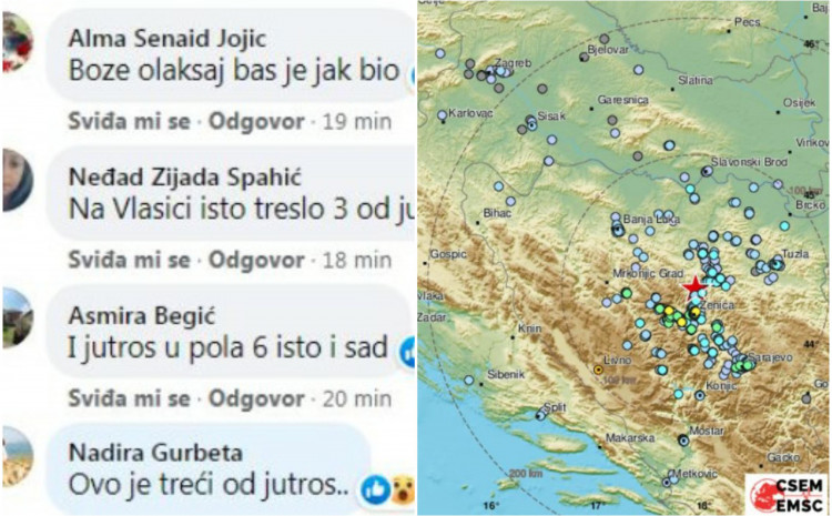 Na društvenim mrežama građani Travnika kažu da je ovo treći zemljotres od jutros.