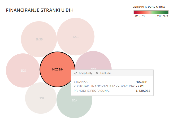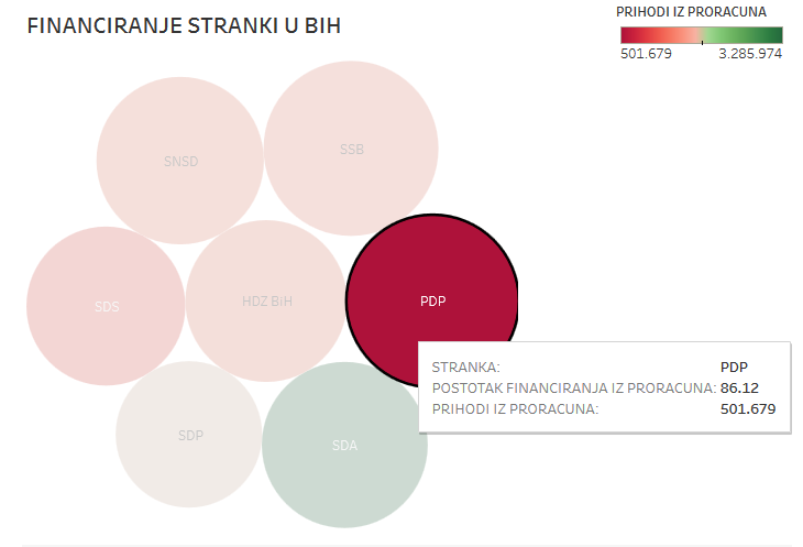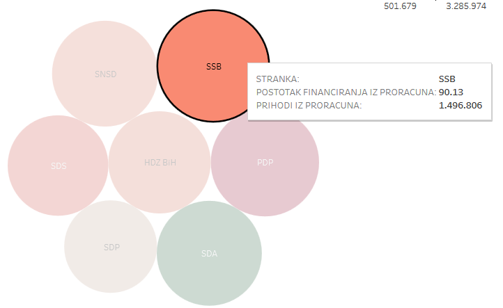 Centralna izborna komisija BiH je prošlog mjeseca objavila revizorski izvještaj o poslovanju političkih stranaka u BiH u 2015. U prilogu donosimo interektivnu grafiku u kojoj je prikazano koliko su ukupno stranke u 2015. dobile iz proračuna za svoje financiranje i koliko je to u postotcima u odnosu na njihov ukupan prihod.