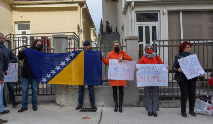 Ispred Delegacije Evropske unije u Podgorici grupa građana organizirala je proteste, poručivši da se dvije i po decenije po završetku rata u Bosni i Hercegovini ta zemlja ponovo nalazi pred neposrednom ratnom opasnošću.