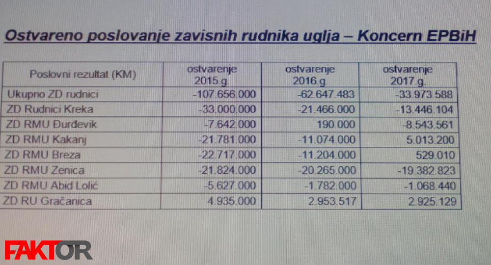U Federalnom ministarstvu energije, rudarstva i industrije su nam kazali kako je već evidentno značajno smanjenje gubitaka u poslovanju u rudnicima uglja. Kao pozitivan primjer ističu rudnike Kakanj, Breza i Gračanica koji su pozitivno poslovali u prošloj godini.