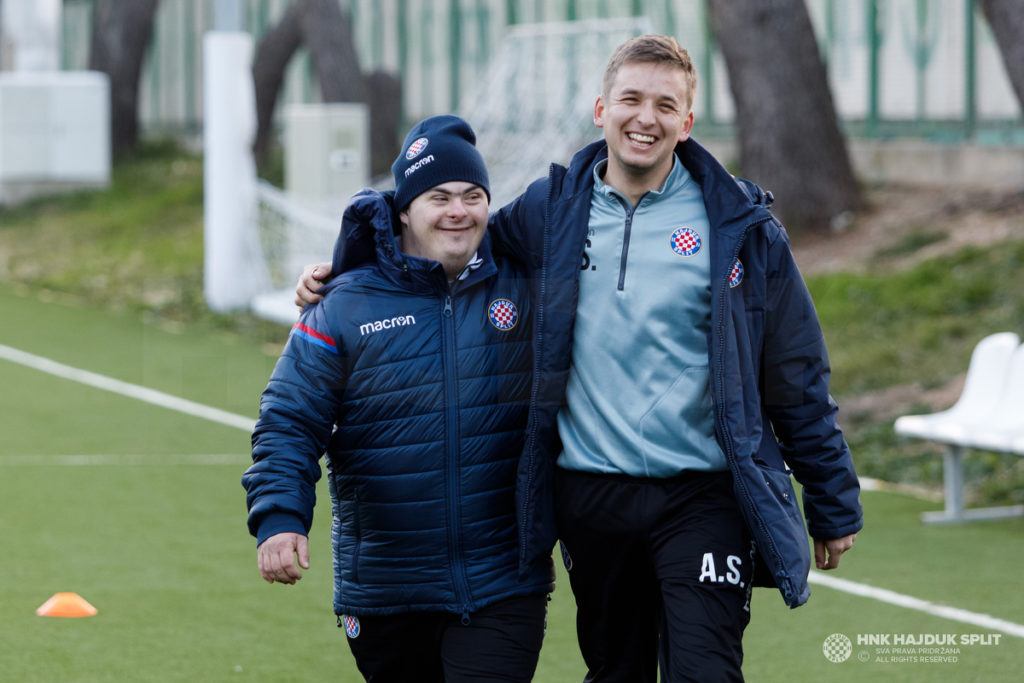 “Luka će biti na usluzi treneru i igračima za sve što treba, pokušat ćemo ga uključiti u što više aktivnosti, a kao što možete vidjeti, za početak mu sjajno ide. Već se sprijateljio s djecom koja su ga odmah prihvatila. Drago mi je i zbog njih jer već od malih nogu moraju učiti kako postoje djeca i ljudi s posebnim potrebama i da su oni sastavni dio našeg društva, ravnopravni svima nama”, naglasio je voditelj Hajdukove Otvorene škole Ante Rađa.