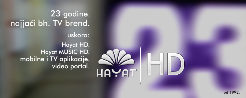 Prateći standarde, uskoro pokrećemo Hayat HD, kao i HD verziju najboljeg domaćeg kanala sa zabavnom muzikom, Hayat MUSIC HD. No to nije sve, uskoro ćete na svojim mobitelima, tabletima pa čak i Smart televizorima imati Hayat aplikacije. Uskoro pokrećemo i prvi video portal u BiH.