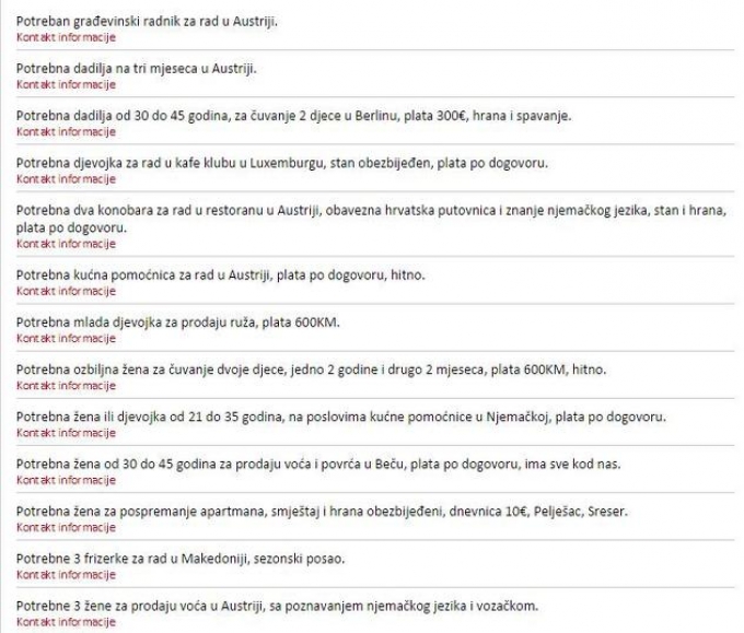 Pored Hrvatske i Crne Gore, Bosanci i Hercegovci odlaze i u druge zemlje raditi sezonske poslove. Slovenija, Austrija, Njemačka, Finska samo su neke od zemalja, a pored turizma i građevinarstva, Bosanci i Hercegovci često rade na branju voća i povrća.