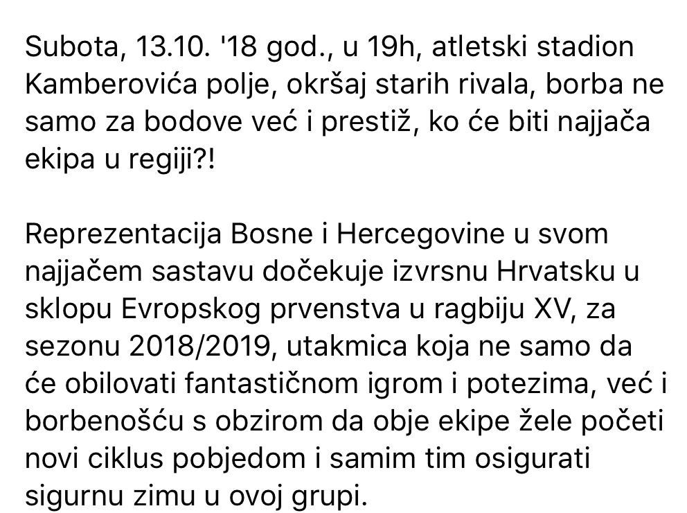 HISTORIJA SE PIŠE Večeras prva ragbi utakmica na Kamberovića polju pod reflektorima