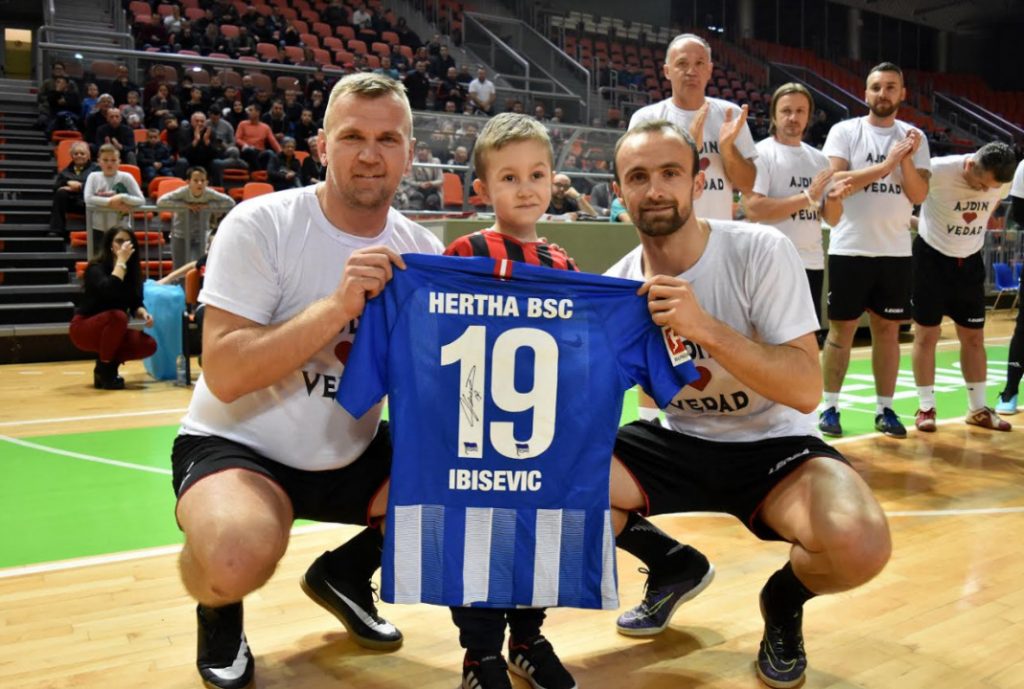 Vedadu Hadžiću (5) je nedavno odstranjen tumor na mozgu, a njegovo zdravstveno stanje još uvijek nije u optimalnom stanju. Nakon zajedničkog fotografisanja prije početka utakmice, Ajdinu i Vedadu su uručeni pokloni.