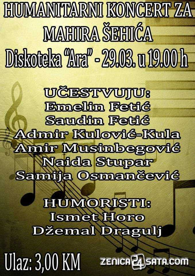 Tim povodom, da bi se potpomoglo liječenju ovog mladog života, bit će upriličen humanitarni koncert u Diskoteci „Ara“ u Kaknju za ovog mladog momka koji će se održati u petak, 29. 03. sa početkom u 19:00 sati.