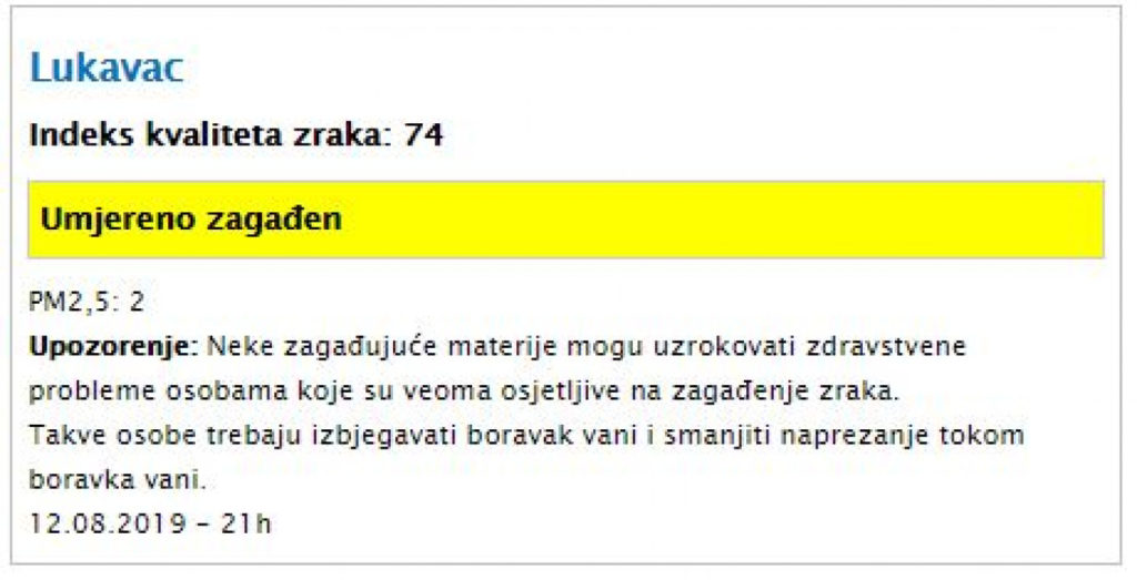 Iako je ljeto i temperature su iznat prosjeka, građani udišu zagađen znak.