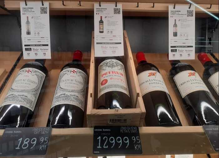 Stoga se u jednoj sarajevskoj trgovini može naći vino koje košta čak 13 hiljada KM, izvještava BiznisInfo.ba. S obzirom da je riječ o boci od 0,75 litara, litar ovog vina košta čak 17,3 hiljada KM.