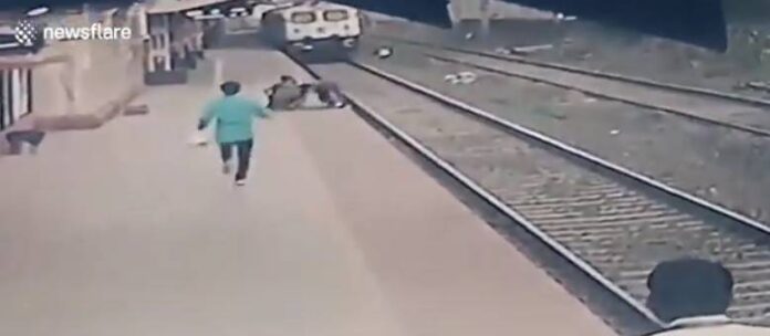 Sigurnosne kamere na željezničkoj stanici u Indiji snimile su trenutak kada je Indijac spasio život dječaku.