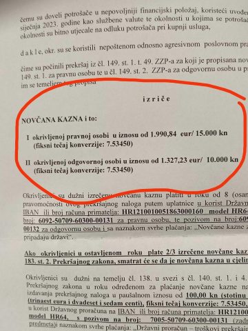 Sabini je pao mrak kad je vidjela da su joj inspektori zbog dvije nove cijene, odnosno dvije usluge koje su poskupile za 36 i devet centi odrezali ikakvu, a kamoli takvu drakonsku kaznu.
