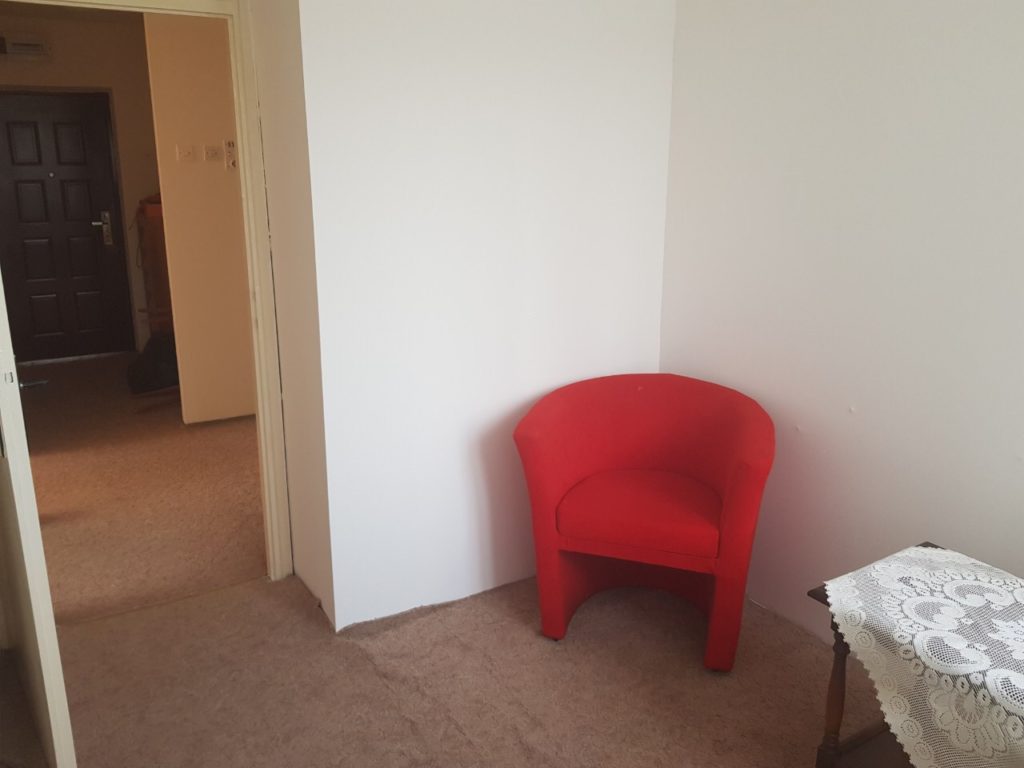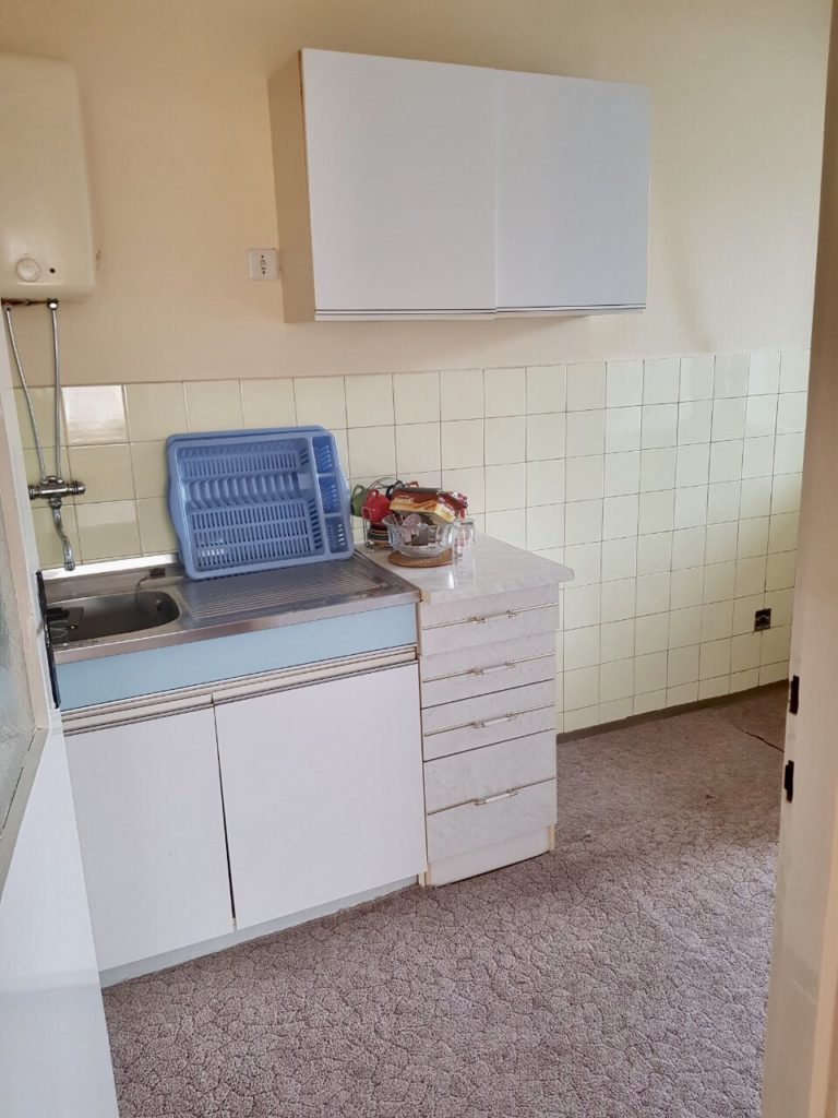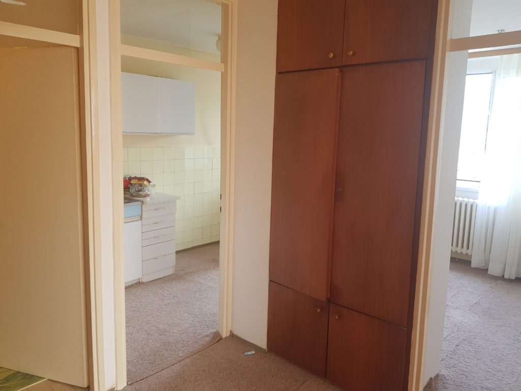 Stan se sastoji od spavaće sobe, velikog dnevnog boravka, sobe za spavanje (dječije sobe), kuhinje (posjeduje frižider) i zatvorenog balkona u produžetku, kupatila i ostave.