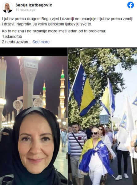 1.islamofob, 2.neobrazovan, 3.zdravstveni problem iz spektra mentalnih poremećaja – napisala je Izetbegović.