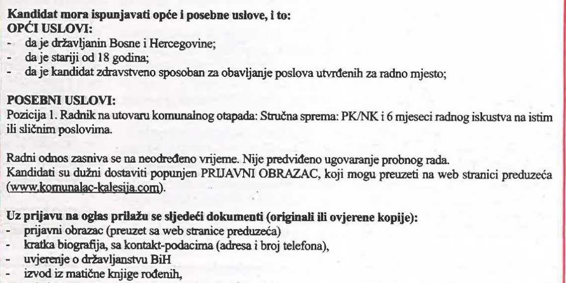 Javni oglas za prijem radnika u JU Apoteka “Zdravlje” Zenica, objavljen u “Dnevnom avazu” 12. 4. 2021. godine.