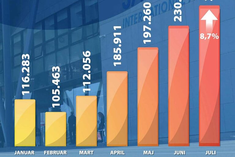 U prvih sedam mjeseci 2025. godine, Međunarodni aerodrom Sarajevo zabilježio je više od 1,2 miliona prevezenih putnika, a protekli mjesec rekordan je po broju putnika.Samo u julu 2025. godine kroz sarajevski aerodrom prošlo je 292.574 putnika, 8,7% više nego u julu 2024. godine. Ovako snažan uzlet još jednom potvrđuje da je Sarajevo nezaobilazna destinacija na regionalnoj mapi, ali i da sve više naših građana koristi mogućnosti koje danas ima.”Zaista sam sretan što možemo podijeliti ovako dobre vijesti. Ovo nije samo statistika, iza ovih brojeva su ljudi, putovanja, doživljaji, porodična okupljanja, poslovne prilike i dugo planirani godišnji odmori.Ovakav rezultat još jednom potvrđuje stratešku orijentaciju ka otvaranju Sarajeva prema svijetu, ali i svijeta prema Sarajevu“, izjavio je premijer Kantona Sarajevo Nihad Uk Naša stranka.Posebno se ističe rast broja putnika na niskobudžetnim linijama, koje su rezultat strateškog djelovanja Vlade Kantona Sarajevo i subvencionisanja novih ruta prema evropskim gradovima.Samo Ryanair je, prema vlastitim podacima, za godinu dana prevezao više od 300.000 putnika iz Sarajeva.”Dolazak low-cost kompanija bio je ključan. Subvencije koje je Vlada Kantona Sarajevo osigurala za otvaranje novih linija pokazale su se kao pun pogodak.S jedne strane, to znači bolju povezanost i rast turizma, ali ono što je meni posebno važno, naši građani danas imaju više prilika da putuju. Putovanja mijenjaju ljude i sretan sam što kao premijer mogu doprinijeti tome”, poručuje Uk.Iako su očekivanja pred sezonu bila još veća, zbog geopolitickih procesa određeni broj arapskih turista nije odlučio putovati. Trend rasta očekuje se i u narednim mjesecima, posebno zbog povećanog interesovanja za letove uoči i tokom ljetnih godišnjih odmora.