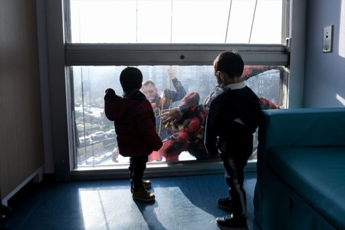 Spuštali su se niz zidove bolnice gdje su ih kroz prozore gledala djeca koja su smještena na tom odjelu. Na ovaj način su željeli izmamiti osmijehe na licima djece.
