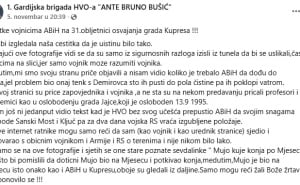 “Čestitke vojnicima ABiH na 31. obljetnici osvajanja grada Kupresa! Tako bi izgledala naša čestitka da je uistinu bilo tako. Gledajući ove fotografije, vidi se da su samo iz sigurnosnih razloga izišli iz tunela da bi se uslikali. Čast vojnicima na slici, jer samo vojnik može razumjeti vojnika. Međutim, mi smo svoju stranu priče objavili, a nisam vidio koliko je trebalo ABiH da dođu do tunela. Je li problem bio onaj tenk s Demirovca, što ih pusti do pola čistine pa ih poklopi vatrom. Na ovoj stranici su priče zapovjednika i vojnika, a ne ono što su na nekom predavanju pričali profesori i akademici, kao o oslobođenju grada Jajca, koji je oslobođen 13.9.1995.”, poručuju iz 1. gardijske brigade “Ante Bruno Bušić”, dodajući i niz podcjenjivačkih komentara: