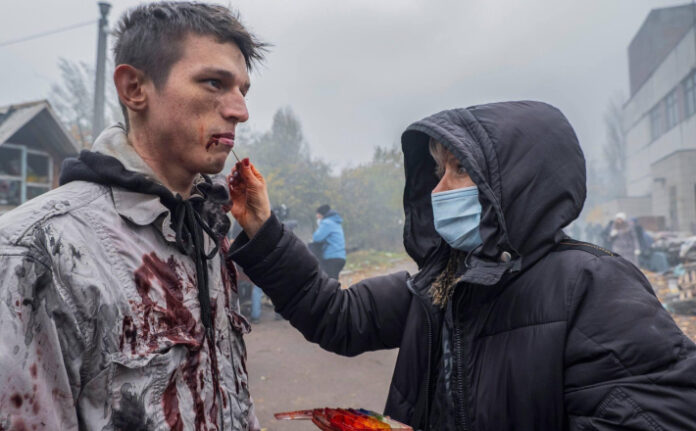 No taj video nije povezan s ratom. Snimljen je 2020. na produkcijskom setu ukrajinske TV serije ‘Contamin’.