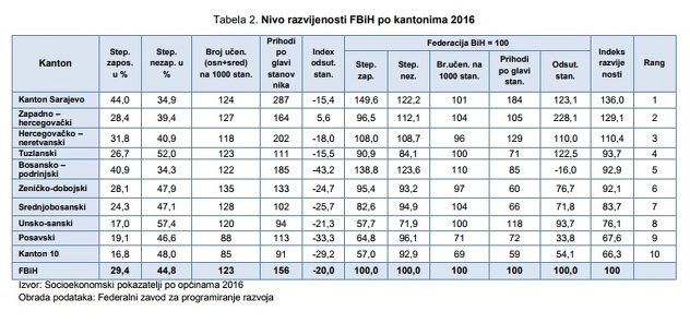Kanton Sarajevo i dalje najrazvijeniji u FBiH, Kanton Goražde prestigao ZDK