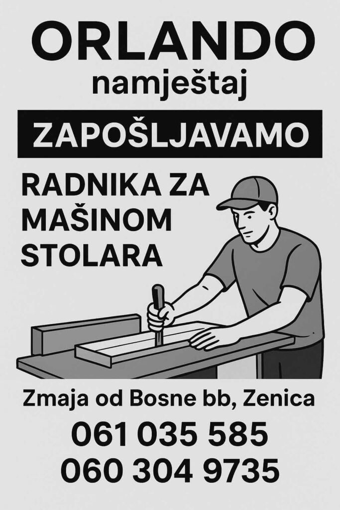 Kompanija ORLANDO namještaj iz Zenice širi svoj tim i zapošljava radnika za…