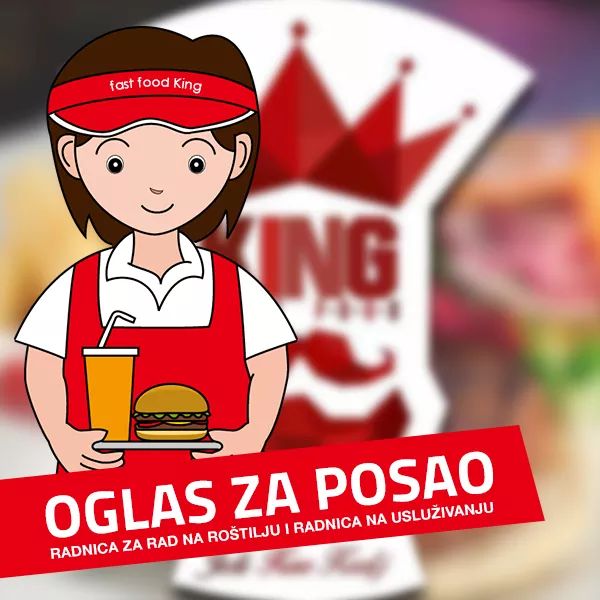 Fast foodu King Zenica potrebni radnici za rad za roštiljem, pomoćni radnici…