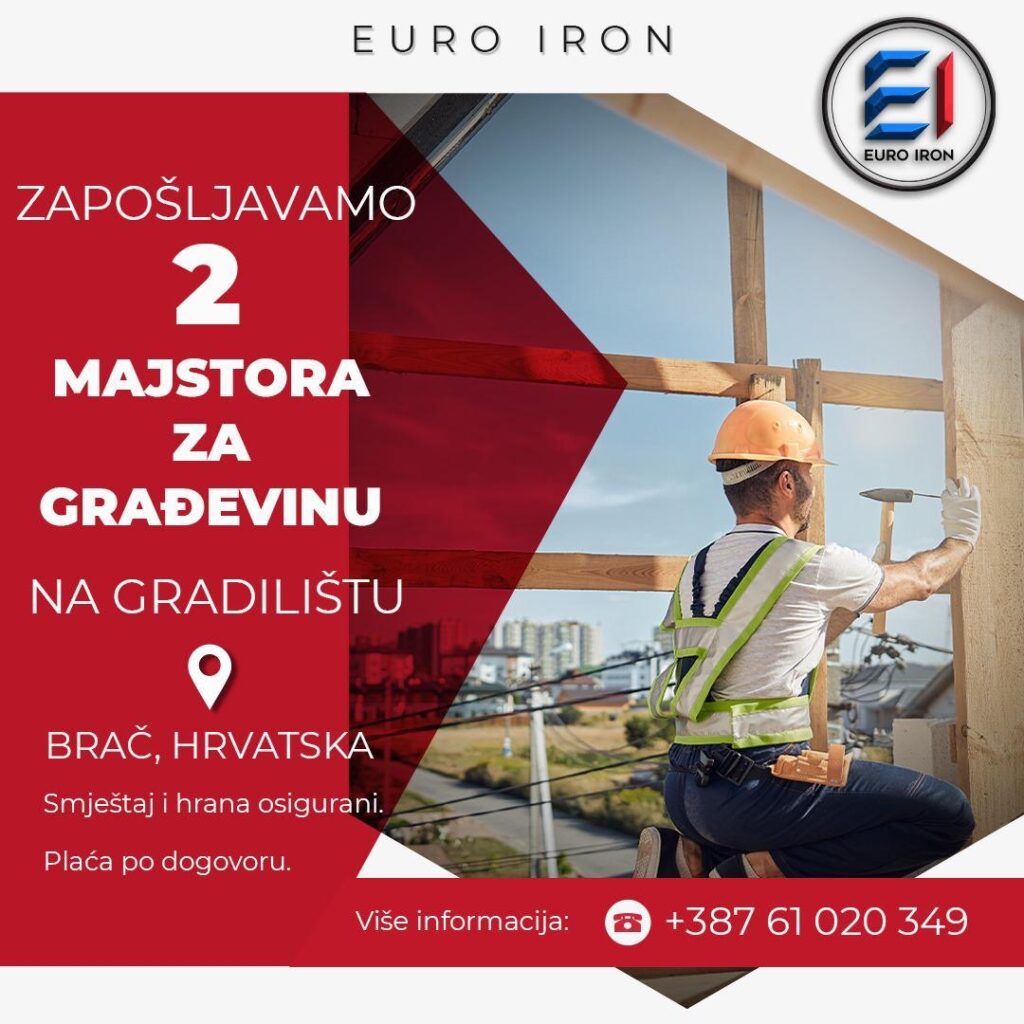 Tražimo dva iskusna majstora za građevinu koji će se pridružiti našem timu…