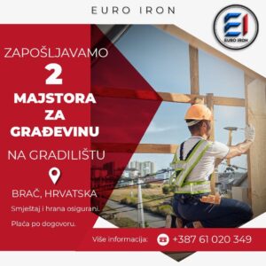 Tražimo dva iskusna majstora za građevinu koji će se pridružiti našem timu…