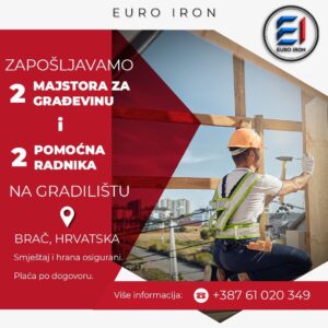 Tražimo dva iskusna majstora za građevinu i dva pomoćna radnika koji će…