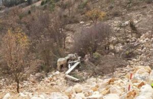 Manja dizalica koja se koristila za radove na dionici autoputa Zvirovići -…